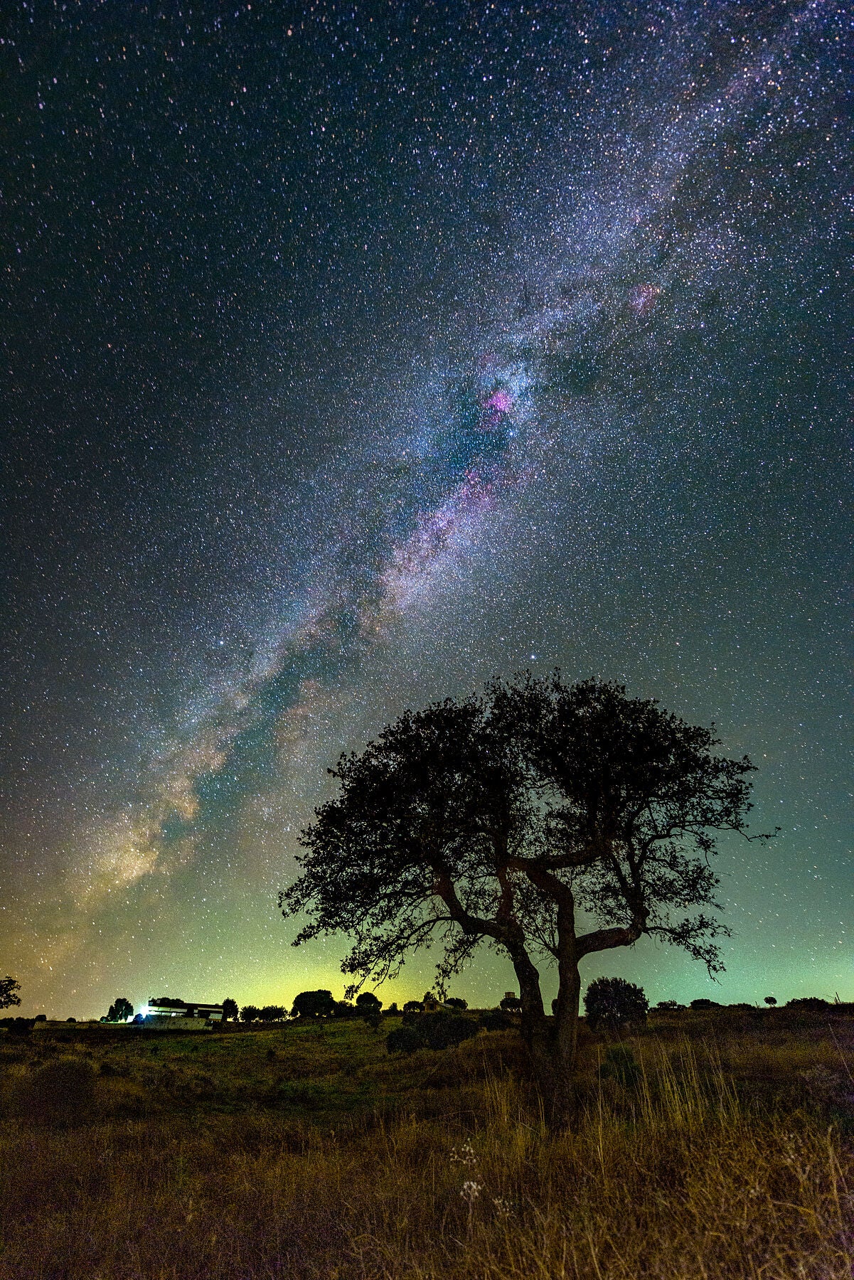 On this particular night taken during one of my private workshops, the airglow was so active that literally painted with greenish hues the background sky. In the foreground, a wonderful trees stands in the golden fields of Alentejo, while the heart of Milky Way is going away until April of next year, where it starts to appear again but late in the night, just an hour before sunrise.