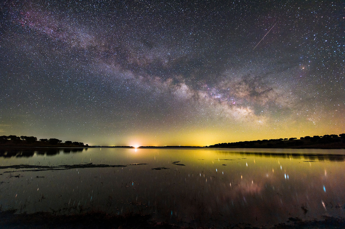 Milky Way Rising Over Alqueva Lake with a Bright Meteor Visible – Photo and Time Lapse